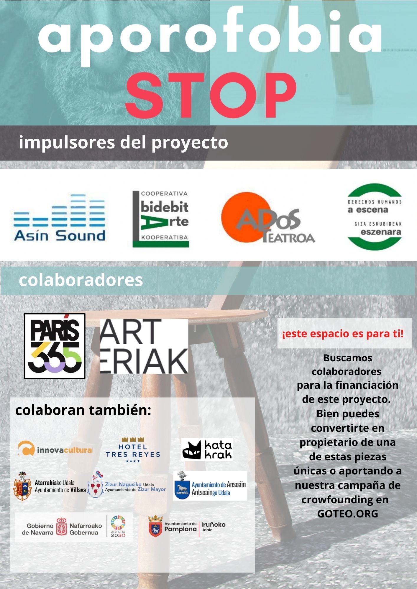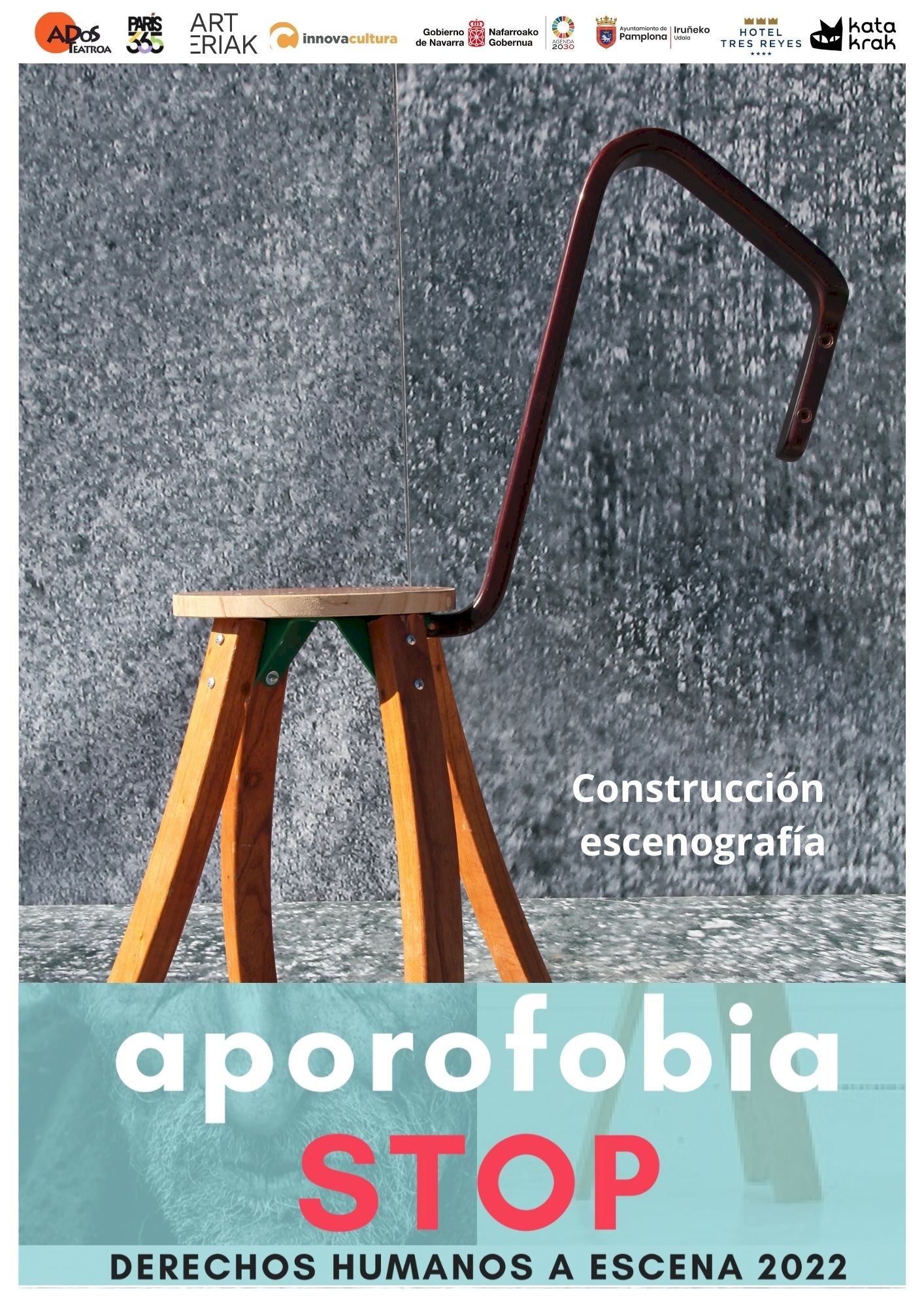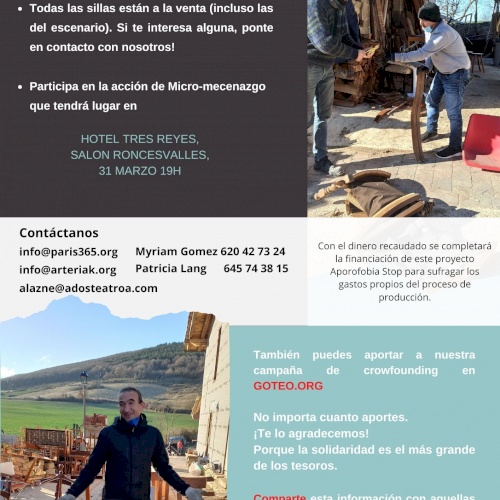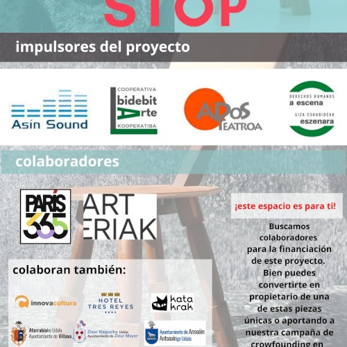 En colaboración con Ados Teatroa, Asín Sound, Bidebitarte Kooperativa y París 365, ARTeriak en este proyecto cultural APOROFOBIA STOP , específicamente su escenografía.