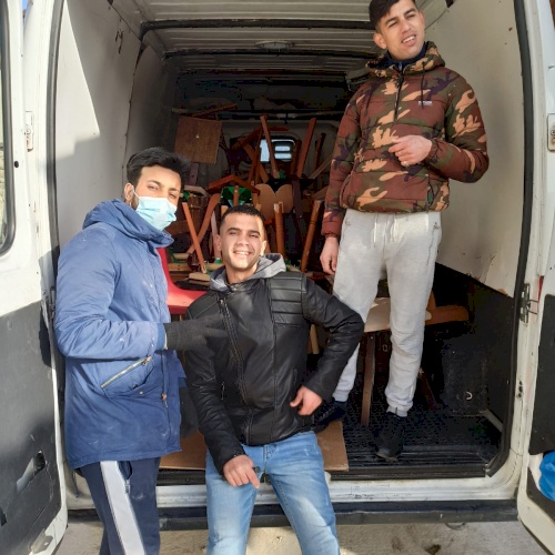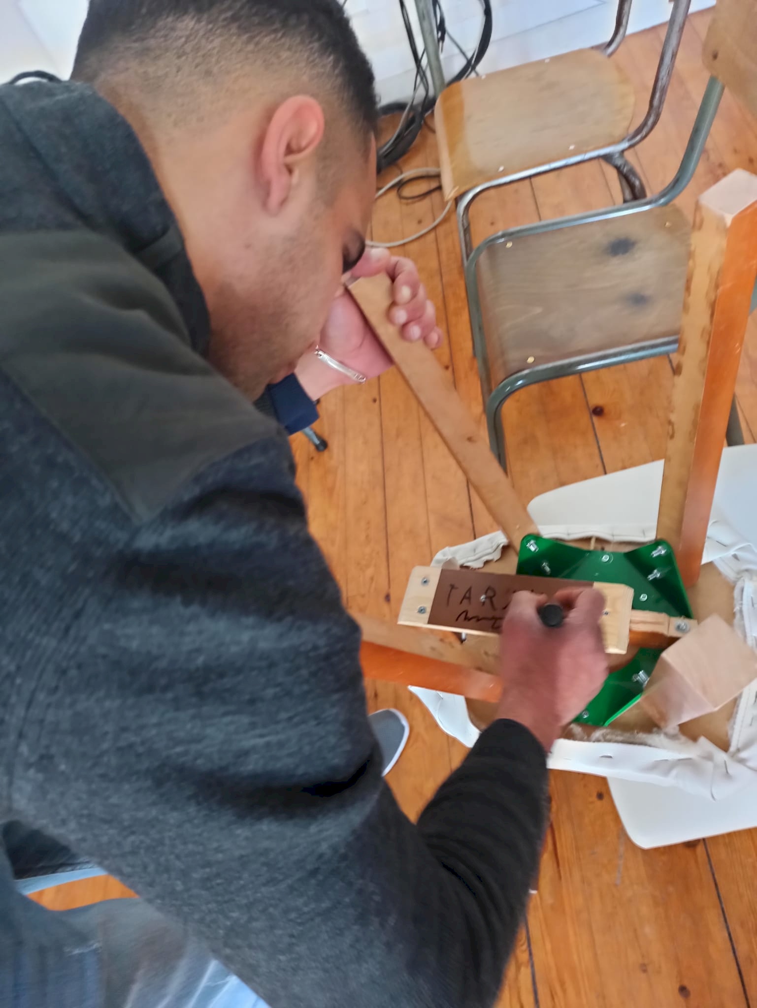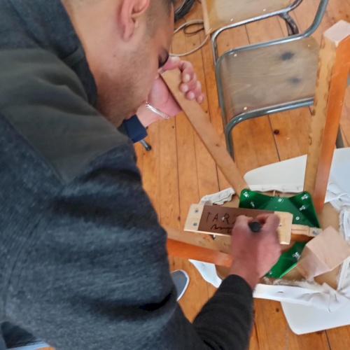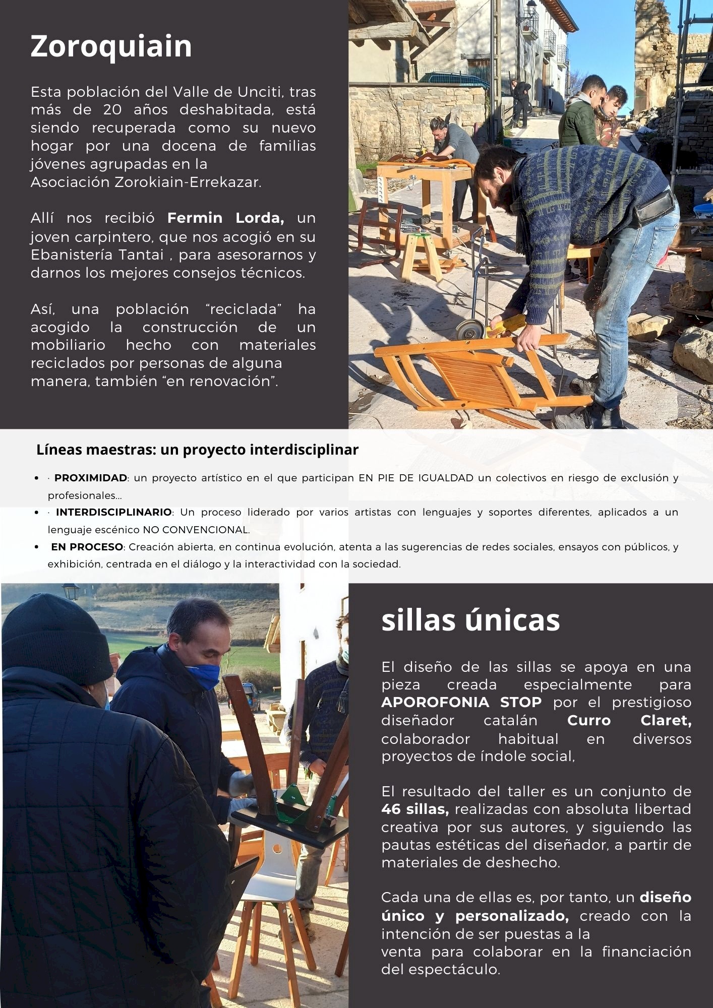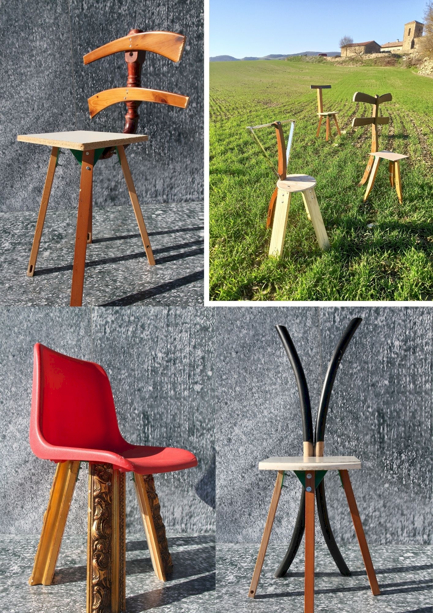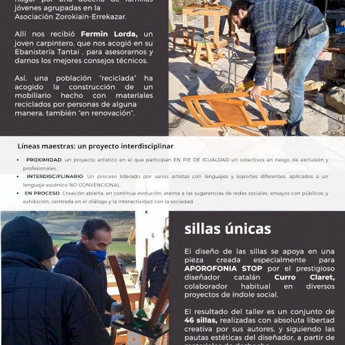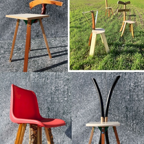 Así, una población “reciclada” acoge la construcción de unas sillas hechas con materiales reciclados y realizada por personas, de alguna manera, también en reciclaje